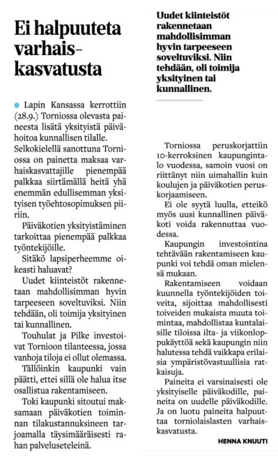Jaa tämä artikkeli Facebook Twitter LinkedIn Edellinen artikkeli: Jokaisella oikeus työhön, Tytti Pernu 29.8.2022 Lapin Kansa Seuraava artikkeli: Kehitysyteistyö- ja ulkomaankauppaministeri Ville Skinnari ja Perustuslaki valiokunnan puheenjohtaja Johanna Ojala-Nieminen Torniossa Konditorio Karkiainen 15.10.2022 klo 12:30 – 13:30