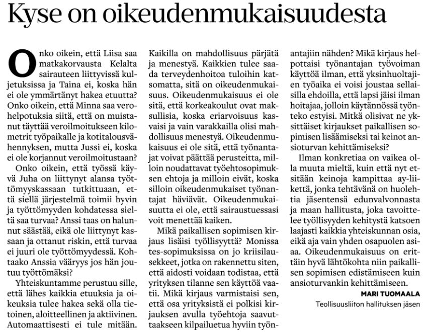 Jaa tämä artikkeli Facebook Twitter LinkedIn Edellinen artikkeli: Meri-Lappin täytyy saada kaksi hyvinvointikeskusta, 15.7.2020 Juhani Tapio LounaisLappi, myös PohjolanSanomissa 8.7.2020 otsikolla Meri-Lappiin saatava kaksi hyvinvointikeskusta. Seuraava artikkeli: Kokoomuskin osaa avata velkahanoja, Marko Varajärvi, 10.9.2020 LapinKansa