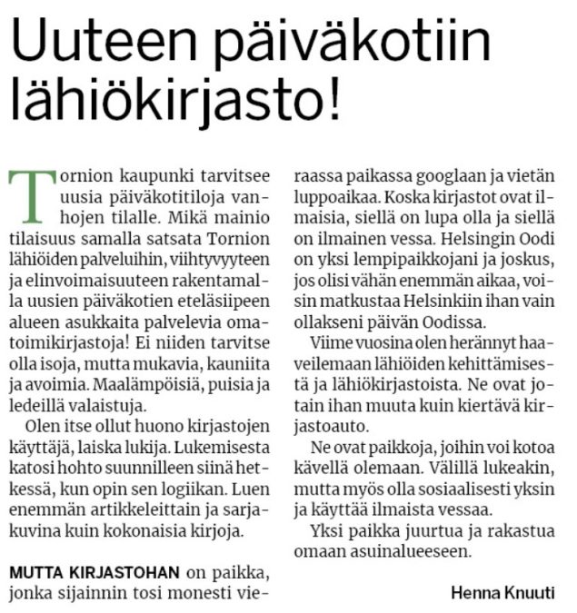 Jaa tämä artikkeli Facebook Twitter LinkedIn Edellinen artikkeli: Työilmapiiri kuntoon, Markku Salmi 18.10.2022 Lapin Kansa Seuraava artikkeli: Pohdintaa Tornion seurakunnasta, Markku Salmi 1.11.2022 Kotikulmilta